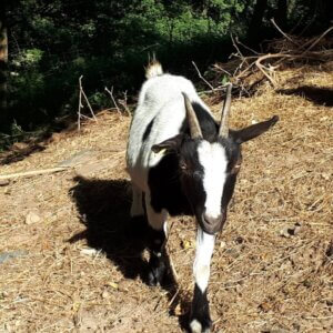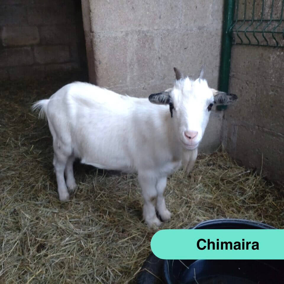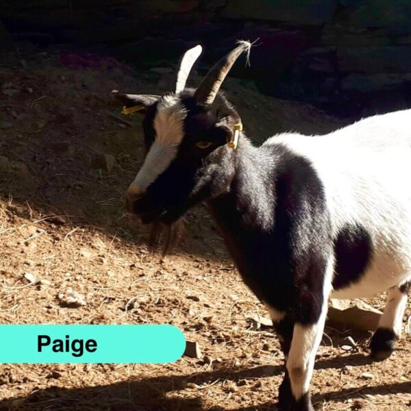 🐾 : Paige est une chèvre ultra sociable : elle vient volontiers vers vous et adore les caresses. Très gourmande, elle n’hésitera pas à manger dans votre main… mais vos doigts, eux, ont intérêt à rester prudents !